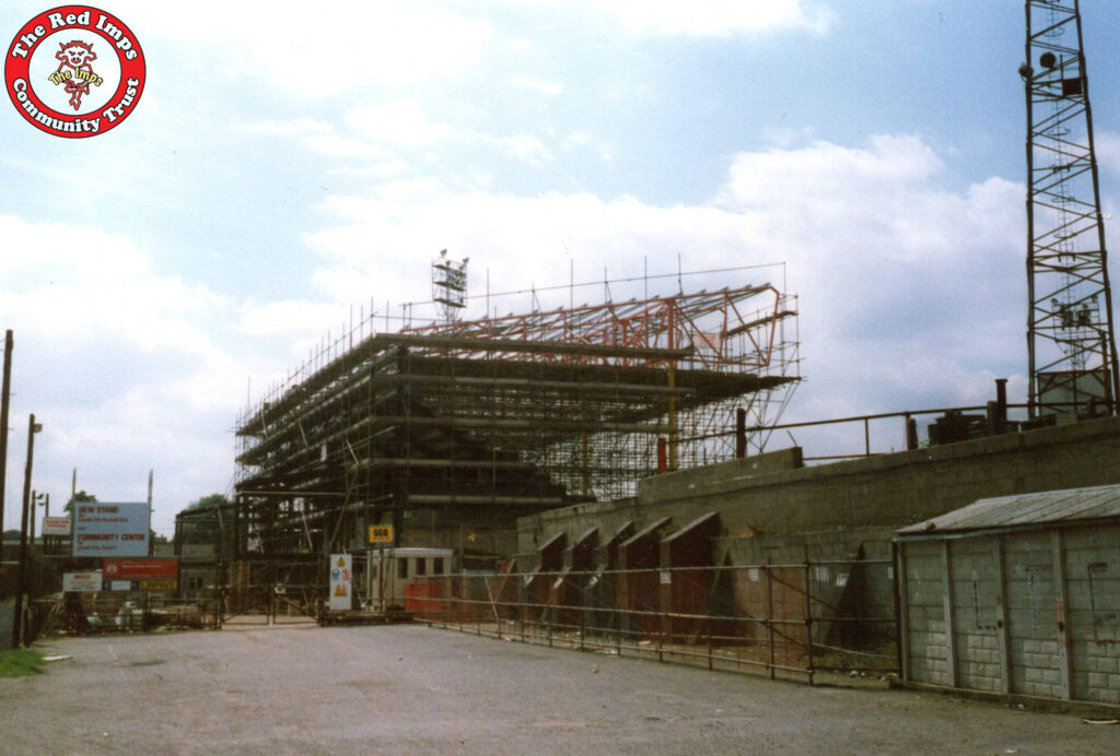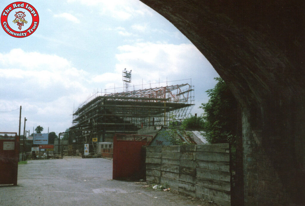 Below are two photographs showing the site as the St Andrews Stand was being built during the 1986-7 season, ready for Lincoln City’s first season in the GM Vauxhall Conference.